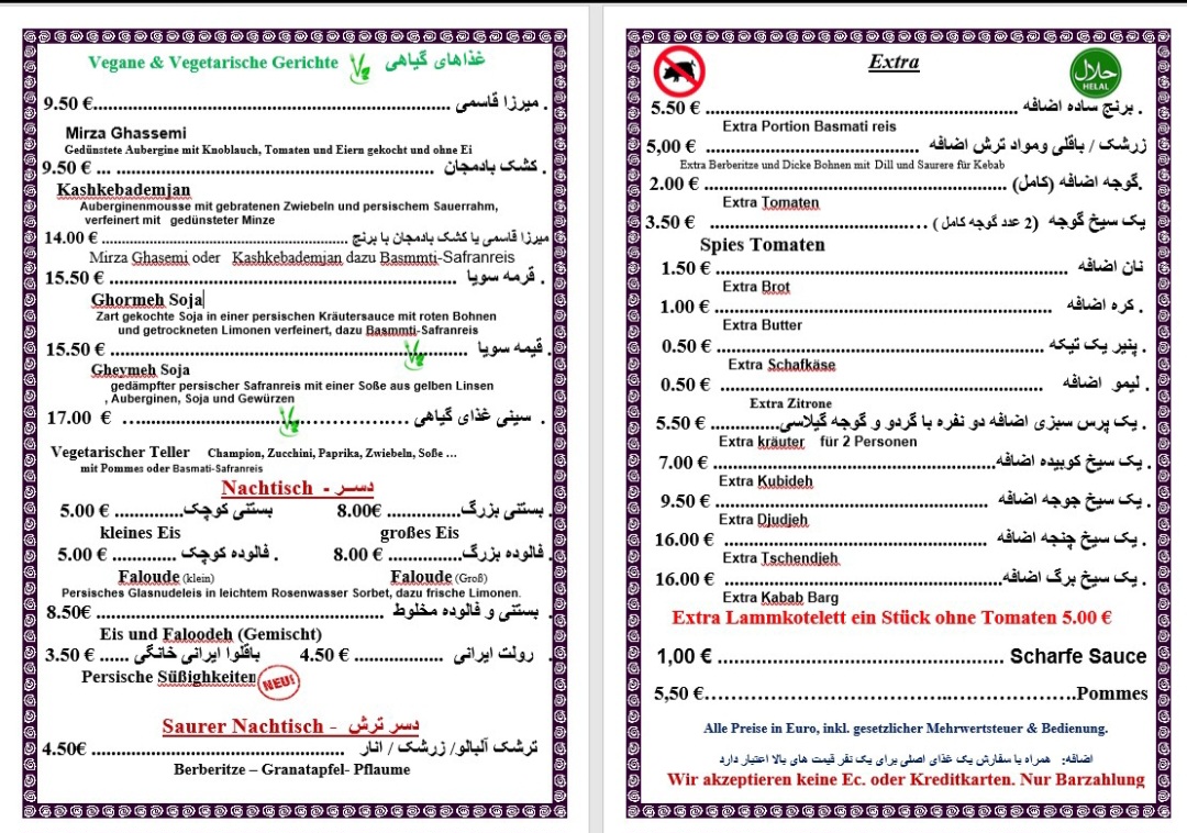 Welcome to Darband Restaurant, a hidden gem nestled in Essen, Germany, at Steubenstraße 41. This delightful eatery specializes in authentic Persian cuisine, where each dish tells a story of rich culinary heritage. Diners rave about the exceptional quality of the kebabs, with reviews highlighting the tenderness and flavor of the meats.